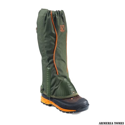 Ghetta Riserva con dettagli arancione fluo, composto da Cordura ripstop con inserti in nylon alta tenacità, fodera interna più traspirante, doppia chiusura (velcro e zip), puntale rinforzato e con l’esclusivo brevetto TRACTION SYSTEM® che presenta molteplici vantaggi: