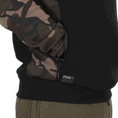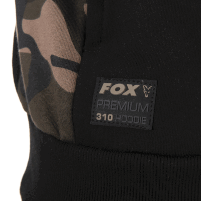 Fox Black/Camo Premium 310 Pullover Hoodies, abbigliamento di qualità premium realizzato in un tessuto 80% cotone, 20% poliestere 310gsm. Caratterizzato dal motivo mimetico Fox e con orlo e polsini elasticizzati. Con cappuccio foderato in micro pile con regolazione a cordino.