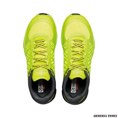In mesh, con gabbia esterna in TPU film termosaldato di sostegno, disegno SCARPA. EXO interno in microfibra di contenimento. La tomaia include un puntale di protezione agli urti in TPU stampato in 3D. Lingua in tessuto leggero e traspirante con tasca per i lacci HLP. La tomaia avvolge come un calzino grazie al sistema costruttivo Sock-Fit LW by SCARPA che evita punti di compressione e garantisce massimo comfort e precisione di calzata.