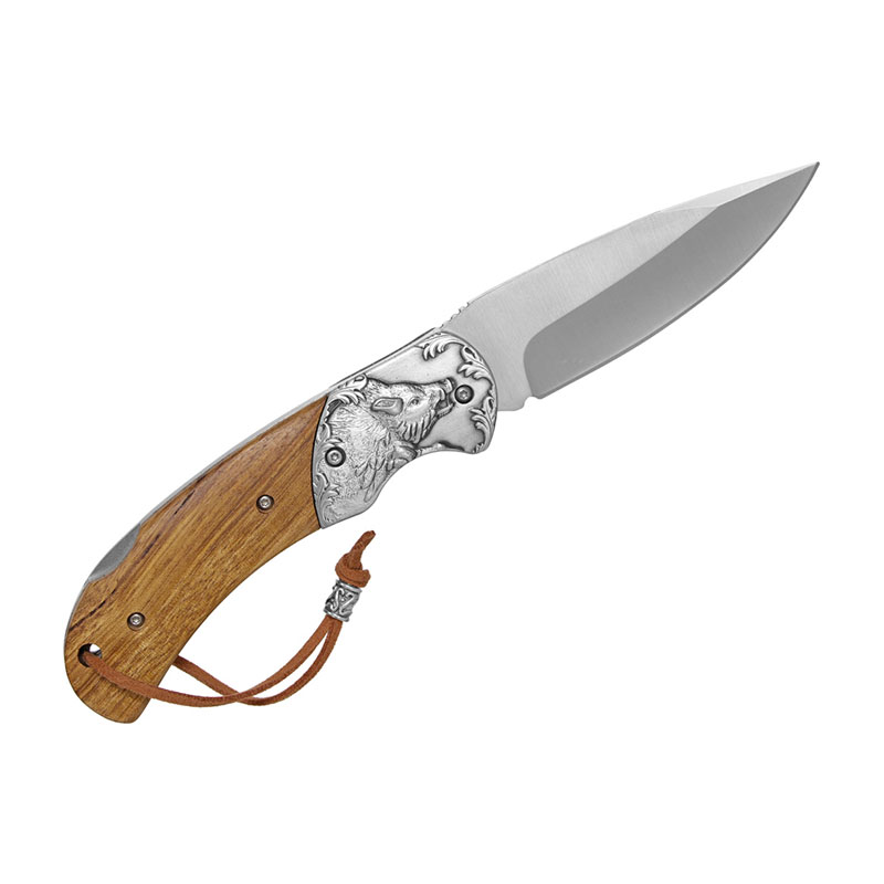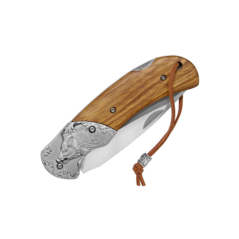 Coltello pieghevole con incisione di cinghiale. Un coltello pieghevole Albainox con una forgiatura decorata con un’incisione di cinghiale. Questo coltello piacerà sicuramente a tutti gli amanti della natura, cacciatori e guardiacaccia. Lo userete volentieri durante escursioni, campeggio e attività all’aperto.