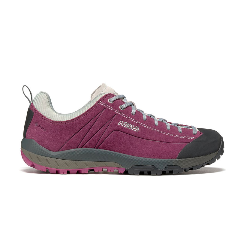Hiking veloci su terreni misti, multi-sport e travel. Presenta una tomaia in pelle scamosciata idrorepellente che offre leggerezza, protezione, comfort e performance, mentre, la fodera in Gore-Tex Extended Comfort Footwear garantisce impermeabilità e traspirabilità. L’intersuola è composta da una densità di Eva che offre supporto, comfort e cushioning. La suola Asolo/Vibram A-Sport utilizza la mescola MegaGrip e assicura le migliori performance, grip in ogni tipologia di terreno, durabilità e azione auto-pulente. A completare il modello il puntalino in gomma per ulteriore protezione frontale e l’allacciatura a fori.
