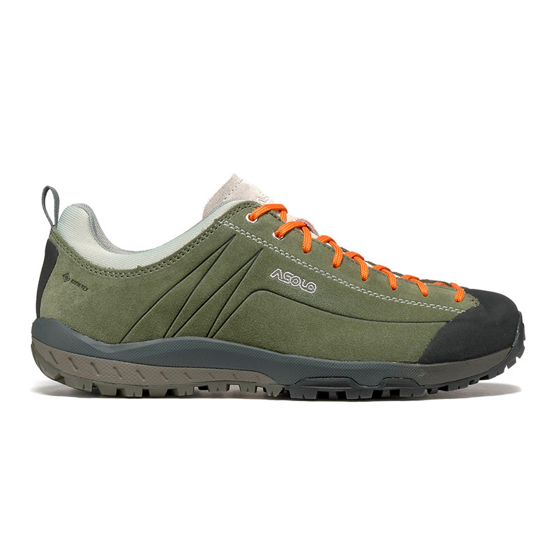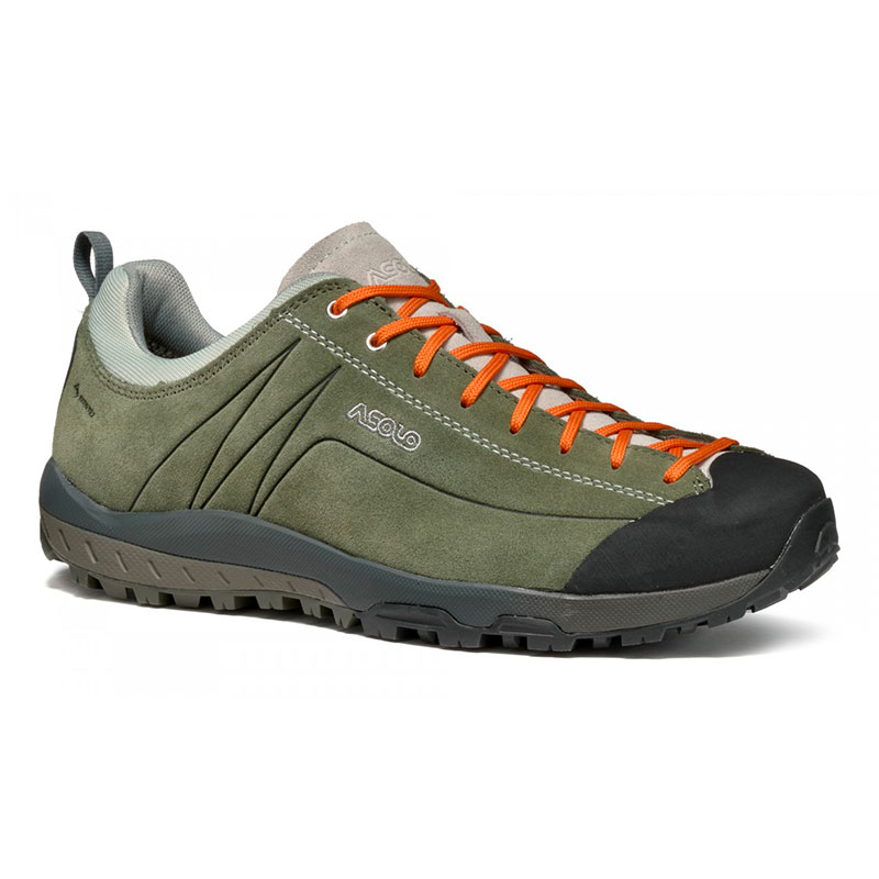 Hiking veloci su terreni misti, multi-sport e travel. Presenta una tomaia in pelle scamosciata idrorepellente che offre leggerezza, protezione, comfort e performance, mentre, la fodera in Gore-Tex Extended Comfort Footwear garantisce impermeabilità e traspirabilità. L’intersuola è composta da una densità di Eva che offre supporto, comfort e cushioning. La suola Asolo/Vibram A-Sport utilizza la mescola MegaGrip e assicura le migliori performance, grip in ogni tipologia di terreno, durabilità e azione auto-pulente. A completare il modello il puntalino in gomma per ulteriore protezione frontale e l’allacciatura a fori.