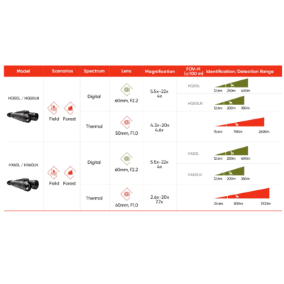 Il nuovo binocolo HQ50L e HQ50LN sono i modelli di HABROK PRO affidabili e resistenti, in grado di offrire un’eccellente qualità dell’immagine sia in ambienti boschivi che in campo aperto, grazie a un sensore da 640×512 con lente da 50mm e al sensore digitale CMOS in 4K con lente da 60mm. Con il suo design ergonomico, il binocolo rimane leggero e potente, per seguirti in ogni avventura di esplorazione.