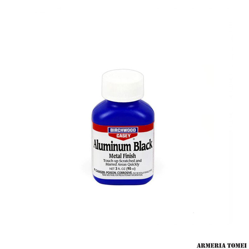 PRODOTTO CHIMICO A TEMPERATURA AMBIENTE UTILIZZATO DAGLI ARMAIOLI E DALL’INDUSTRIA PER ANNERIRE LE PARTI IN ALLUMINIO. RIPRISTINA RAPIDAMENTE LE AREE GRAFFIATE E ROVINATE. IL LIQUIDO AD AZIONE RAPIDA È FACILE DA APPLICARE SENZA VARIAZIONI DIMENSIONALI. IL COLORE VARIERÀ DAL GRIGIO INTENSO AL NERO A SECONDA DELLA LEGA. ALUMINIUM ™ BLACK METAL FINISH È ECCELLENTE ANCHE PER ANNERIRE TARGHETTE, PLACCHE, TROFEI E ALTRI OGGETTI INCISI.
