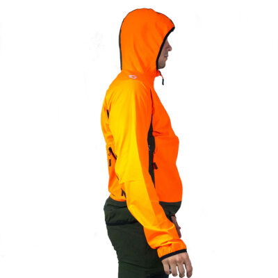 Giacca stretch prodotta da Blatex, con cappuccio, tasca sul lato sinistro del petto con chiusura a zip impermeabile, 2 tasche sul busto e cacciatora sul retro del capo, molto confortevole. In tessuto adatto a tutte e 4 le stagioni. I vantaggi di questo tessuto sono la riduzione del rumore e la resistenza alle pieghe. Tessuto elasticizzato in 4 direzioni, traspirante e permeabile all’aria, ti mantiene asciutto e comodo quando sudi. Leggero e non ingombrante.