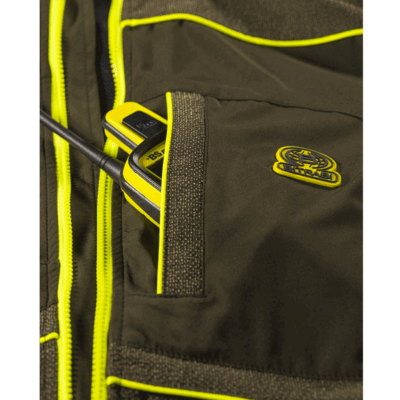 La giacca da caccia BITRABI LION è dotata anche di due tasche interne porta documenti e porta cellulare. La robusta cerniera frontale forte e resistente YKK in giallo fluo ha un doppio cursore per garantire maggiore comfort e libertà di movimento. La confortevole carniera sulla parte posteriore è molto capiente e dotata di cerniere YKK facilmente apribili.