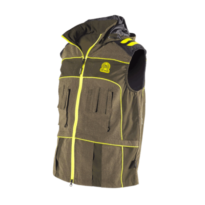 Il gilet da caccia in Cordura BITRABI SHARK è leggero e traspirante grazie al materiale utilizzato e alla rete interna di cui è dotato; presenta rinforzi sulle spalle, dettagli alta visibilità e ha un cappuccio removibile e regolabile. La robusta e resistente cerniera YKK giallo fluo ha un doppio cursore per garantire maggiore comfort. Il Gilet da caccia BITRABI SHARK è dotato, nella parte più alta, di due tasche anteriori dedicate al palmare satellitare per cani da caccia o alla radio ricetrasmittente; due ampie tasche porta oggetti frontali e due tasche interne porta cellulare e documenti.