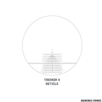 TREMOR4: il reticolo del cannocchiale TREMOR4™ si basa sull’H322™ ed è progettato come compagno dei reticoli del cannocchiale TREMOR2™, TREMOR3™ o TREMOR5™, ma è anche un reticolo eccezionale per l’osservazione con qualsiasi reticolo del cannocchiale basato su MRAD. Con la sua griglia Horus da 0,2 mil e i punti del vento brevettati per il tempo di volo, può essere utilizzato con qualsiasi balistica e in qualsiasi condizione ambientale per eccellenti capacità di comunicazione dello spotter di follow-up.
