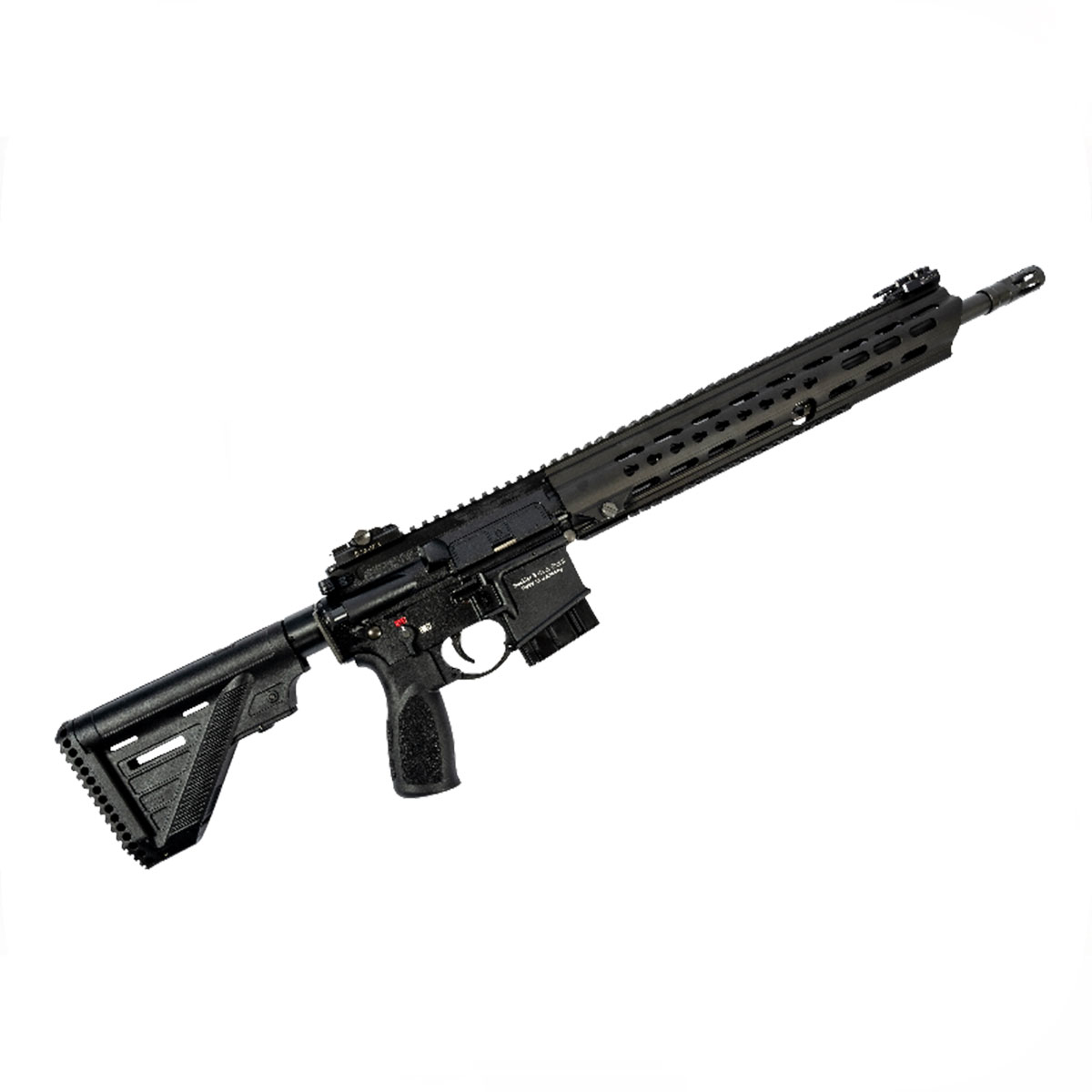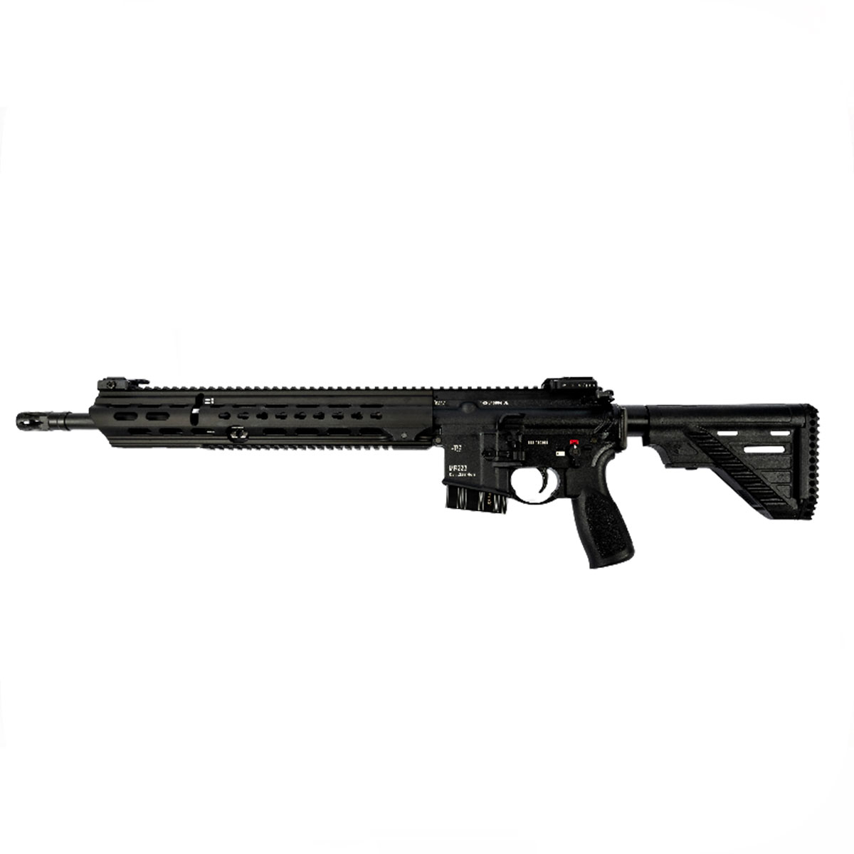 La carabina semiautomatica HK MR223 è un’arma eccezionale, riconosciuta in tutto il mondo per l’assoluta affidabilità, versatilità e resistenza. Le canne di precisione forgiate a freddo e cromate sono flottanti e garantiscono una precisione ottimale. Il paramano Slim Line con interfacce HKey si adatta perfettamente al dado cilindrico esteso e offre un’ampia gamma di opzioni individuali per attrezzature speciali e accessori. Il calcio estensibile Slim Line rende l’MR223 estremamente maneggevole e può essere adattato in modo ottimale alla lunghezza del corpo del tiratore mediante posizioni di bloccaggio. Il caricatore svasato supporta bene il cambio rapido dei caricatori ed è compatibile con i caricatori standard NATO.