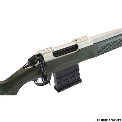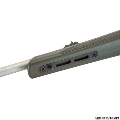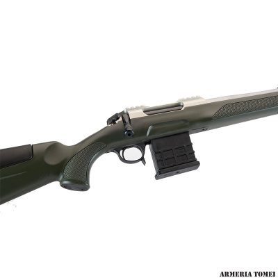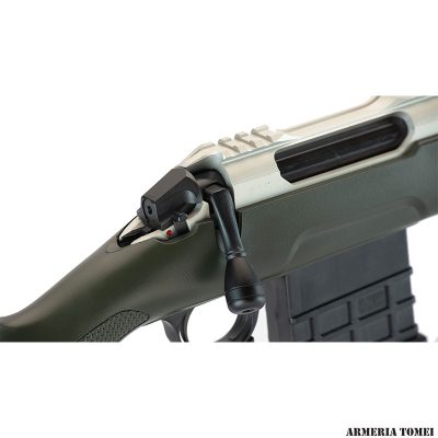 La nuova azione Sabatti Rover è un progetto completamente nuovo, ottenuta per fresatura dal pieno da una billetta di Ergal 55 (lega di alluminio 7075 ad alta resistenza), lavorata con tolleranze minime e finita per anodizzazione dura. L’azione è dotata di una slitta Picatinny integrale che permette il montaggio di ottiche di puntamento o altri dispositivi di mira.
