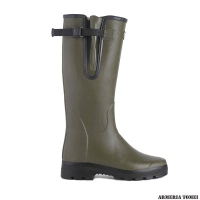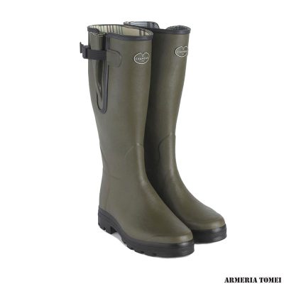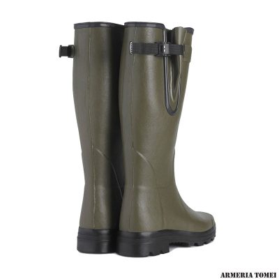 Iconici stivali alti in gomma da campo, lavorati a mano da gomma naturale con rivestimento in policotone, design jersey per un uso comfortevole anche nelle stagioni più calde.