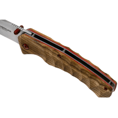 Si apre rapidamente con una mano con il perno del pollice. In questo modo puoi tornare al lavoro velocemente. Il coltello è arricchito con un solido liner lock per assicurare che le tue dita siano al sicuro quando il coltello è aperto. Il manico è realizzato in uno splendido legno Zebrano. Un ottimo tipo di legno con un motivo grossolano che è davvero unico su ogni coltello. La lama è realizzata in acciaio 440A, un acciaio inossidabile semplice e facile da affilare.