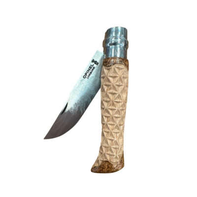 COLTELLO – OPINEL – N.9 CARBONE REALIZZATO A MANO | INTAGLIO A TRIANGOLI | LAMA ORSO