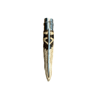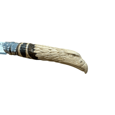 Realizzato a mano da un artigiano della nostra zona. Lama incisa a mano con scena di aquila, il manico è stato lavorato ed intagliato. Il tutto lavorato completamente a mano. Lama acciaio Inox.