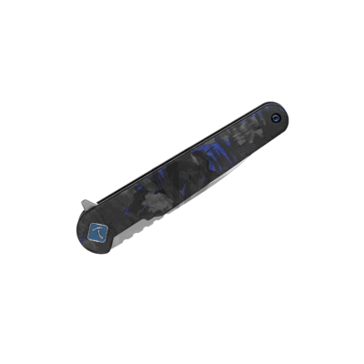 La lama è realizzata in acciaio per utensili D2 di qualità. Il coltello è molto facile da aprire con una mano spingendo il flipper, e in posizione aperta la lama è fissata dal linerlock. Grazie alla posizione della lama su un cuscinetto a sfere, il suo funzionamento è meravigliosamente fluido. L’impugnatura è in fibra di carbonio con struttura disordinata da un lato e G10 dall’altro. Il coltello è dotato di clip da tasca ed è inclusa una custodia in nylon.