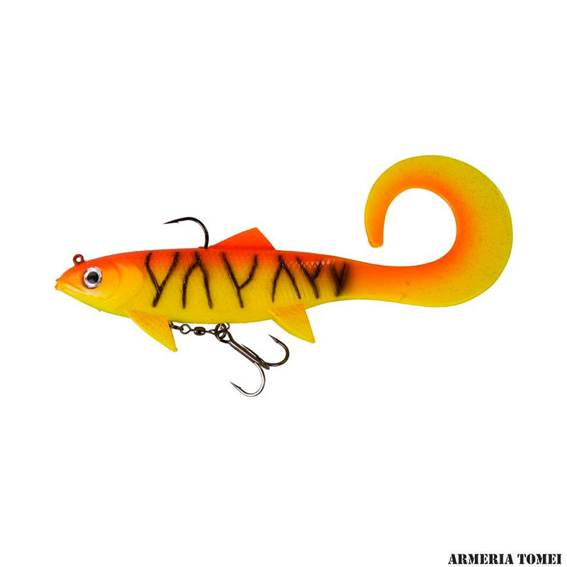 Soft swimbait già armata ed appesantita con grossa coda a falce, tipo gorsso grub, per luccio e siluro. Il corpo a forma di pesca affonda durante il recupero con una blanda azione di rolling. Affondamento medio ed ancorette affilate chimicamente abbinate ad un robusto amo dorsale. Si prestano sia alla pesca al lancio (casting) che traina (trolling). Prodotte in varie misure, tutte con materiale plastico molto robusto.