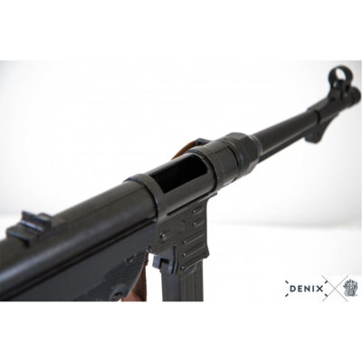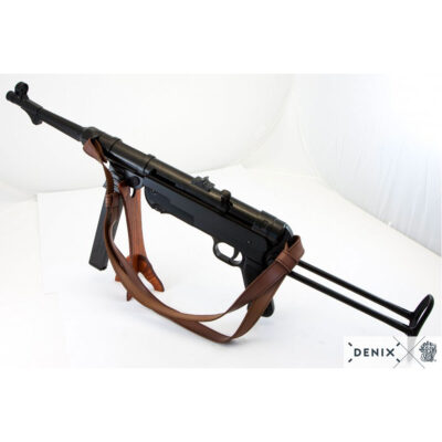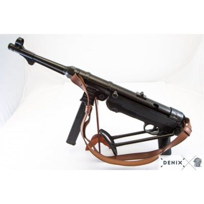 La MP40 (Maschinenpistole 40) fu progettata da Heinrich Vollmer nel 1940, con lo scopo di equipaggiare i soldati tedeschi con un’arma d’assalto. Ha usato caricatori di 32 cartucce da 9 mm e la sua portata effettiva era di circa 100-150 metri. Era un’arma molto affidabile e molto economica da produrre. Aveva un rinculo relativamente debole anche quando sparava a raffiche, a causa della sua bassa velocità di fuoco; Questo gli ha permesso di essere più precisi a breve distanza (aree urbane, foreste, ecc) degli altri fucili mitragliatori del tempo, ma è stato meno efficace per il suo campo aperto portata limitata; questo è stato uno dei motivi che ha motivato il design dello Stg-44, il predecessore dei moderni fucili d’assalto.