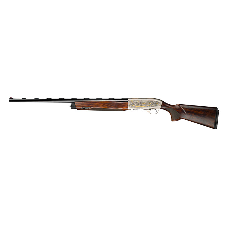 L’A400 500 Years Special Edition rende omaggio alla bellezza senza tempo della caccia attraverso una maestosa scena incisa, che prende vita sul fronte e sul retro della carcassa nichelata. Raffinati accenti di inchiostro e preziosi inserti in oro creano un moderno gioco di contrasti con le incisioni e con l’elegante legno Extragrain, culminando nel simbolo inconfondibile di questo traguardo: il logo dei 500 anni di Beretta.