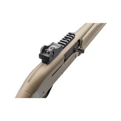 La canna corta da 18½ pollici e la finitura cerakote Flat Dark Earth non lasciano spazio a dubbi: questa versione dell’SX4 è completamente tattica. L’SX4 FDE Tactical è dotato di mirini appositamente progettati per il tiro d’azione. Sul bozzello è montata una guida Picatinny.
