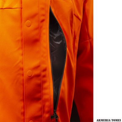 - Cappuccio preformato amovibile con zip YKK, con coulisse di regolazione “Easy Movement” per garantire libero campo visivo