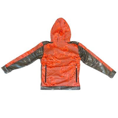 Questo prodotto è stato realizzato con un tessuto rivestito in poliuretano con elevate prestazioni di impermeabilità, traspirazione e con un ottima resistenza allo strappo e alla solidità dei colori durante il lavaggio. Cappuccio estraibile tramite zip, tasca lato cuore con zip impermeabile, sul retro capiente tasca cacciatora.