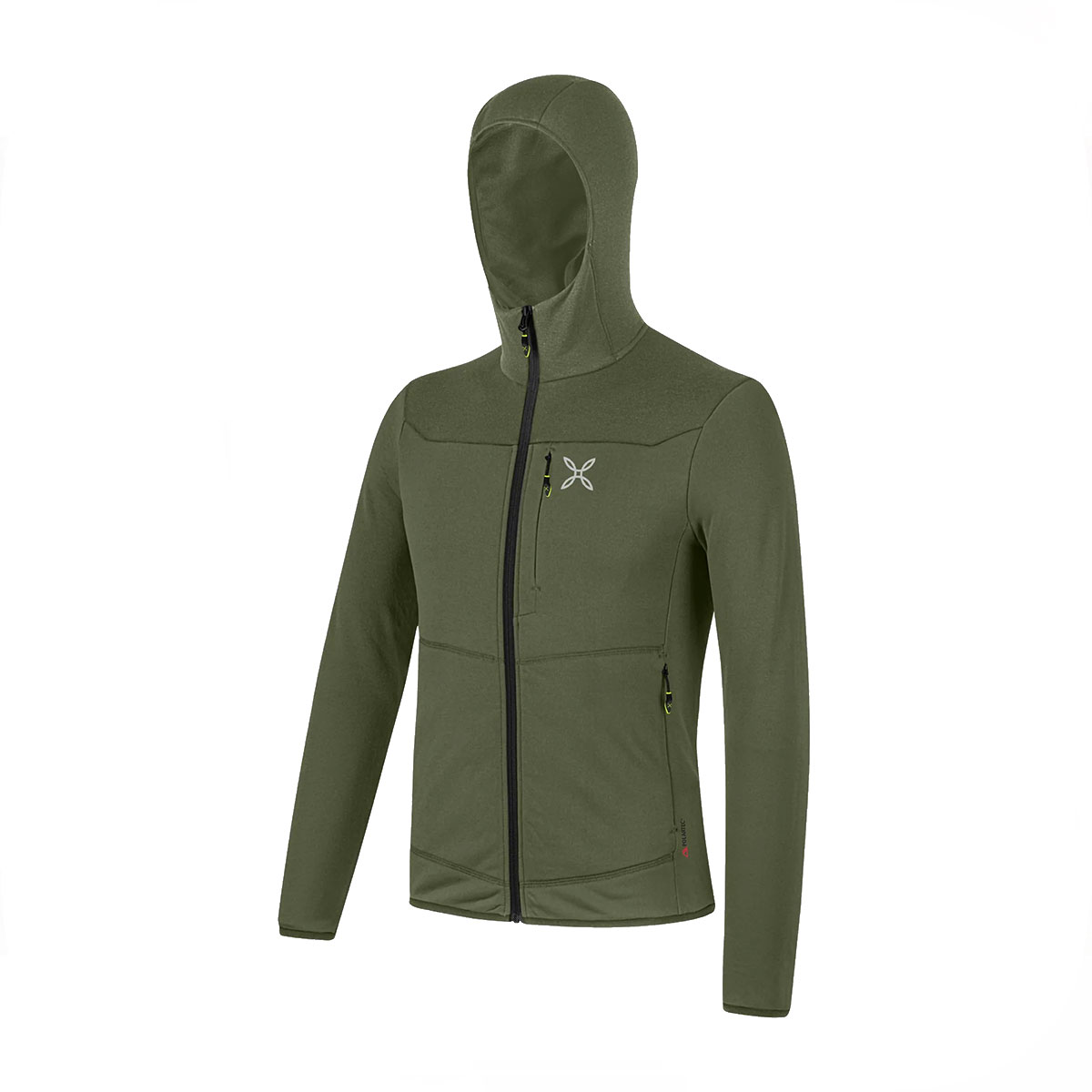 POLARTEC® POWER STRETCH® PRO™: tessuto elasticizzato form-fitting (241 g/mq), garzato a rovescio, con elevato recupero elastico. Questo tessuto stretch è stato concepito per seguire ed avvolgere il corpo durante l’utilizzo. Eccellente gestione dell’umidità, comfort e durata; allontana il sudore, altamente traspirante, di facile manutenzione.