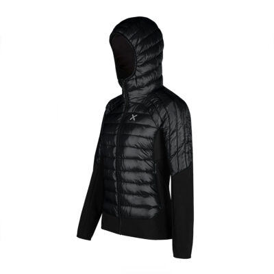 Questa giacca ibrida imbottita da donna è stata creata appositamente per lo scialpinismo e le avventure alpine che richiedono rapidità a basse temperature e con clima variabile. Traspirante e comprimibile, è uno strato altamente performante per i tuoi obiettivi invernali più impegnativi. Il guscio esterno è realizzato in nylon riciclato ultraleggero con una finitura DWR priva di sostanze chimiche che resiste al vento e all’umidità, mentre i pannelli in jersey elasticizzato garantiscono libertà di movimento e comfort. All’interno, l’imbottitura Comfortemp® Down Feel realizzata in fibre di PET riciclate imita la morbidezza e il volume del piumino naturale riducendone l’impatto ambientale. Gli inserti in jersey spazzolato offrono un maggiore calore e controllo dell’umidità. Il modello è dotato di orlo, polsini e cappuccio stretch per garantire una vestibilità sicura e una protezione extra, mentre le tasche per mani con zip consentono di riporre al sicuro gli oggetti essenziali.