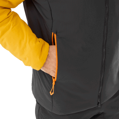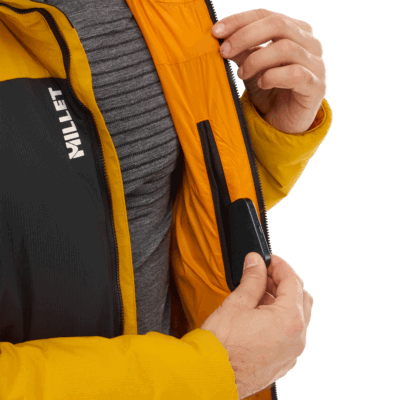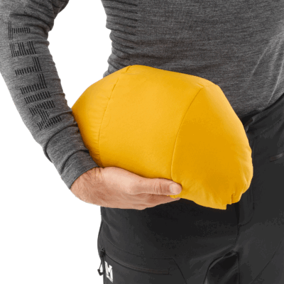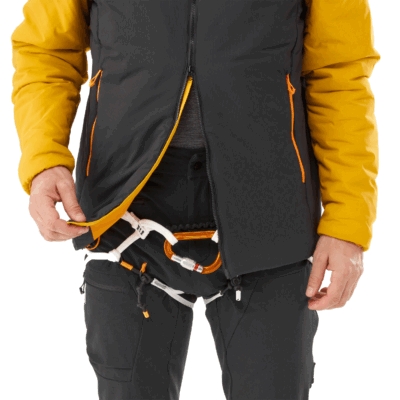 Progettata per le attività in montagna, questa giacca propone una zip centrale a due vie che facilita l’uso dell’imbracatura e due tasche per le mani che rimangono sempre accessibili. Se necessario, possiamo anche far scivolare il cappuccio elasticizzato sotto il casco. Quando la temperatura sale, questo piumino comprimibile con cappuccio può essere facilmente riposto nello zaino.