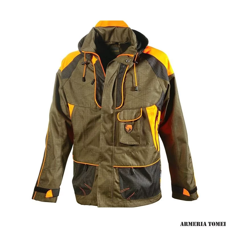 Gilet da caccia Univers Cinghiale New mod.93048 392 arancio ad altà visibilità. Gilet per la caccia al cinghiale ideato per percorsi impervi e boschivi, realizzato in ottimo ripstop impermeabilizzato e laminato con membrana Univers-tex. Particolari applicazioni in contrasto di colore e dalla colorazione arancio fluorescente. Dotato di ampio carniere posteriore con chiusura a zip, cappuccio staccabile, tasca porta GPS e diverse tasche per ogni utilizzo.