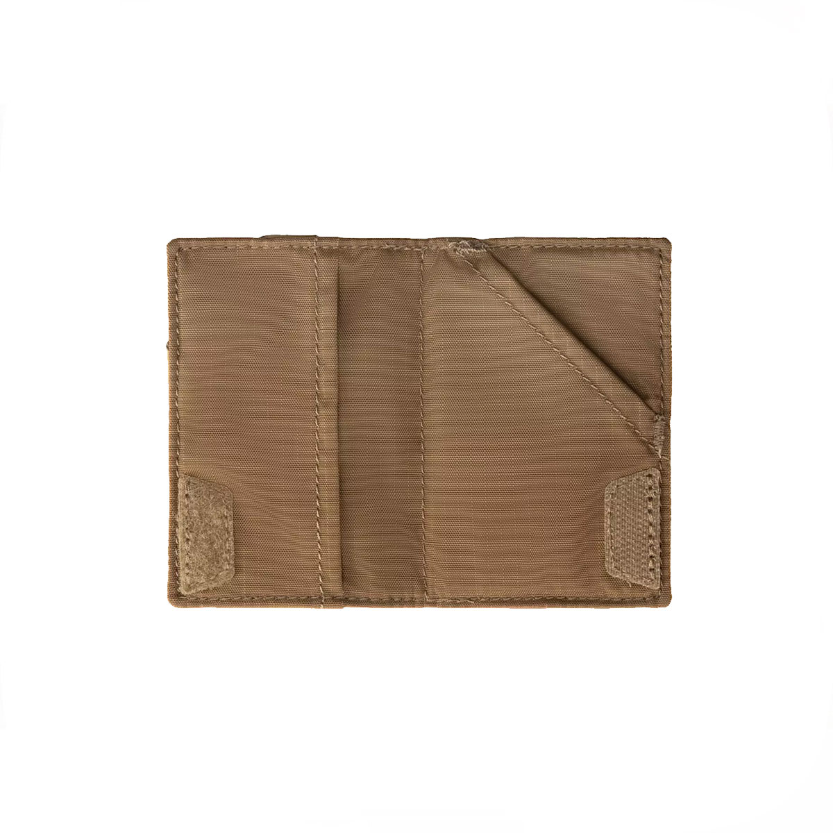EDC Mini Wallet è un portafoglio minimalista pensato per contenere solo l’essenziale: carte di credito, documenti, biglietti del parco. Ha due tasche piatte e si chiude con un piccolo gancio e passante.