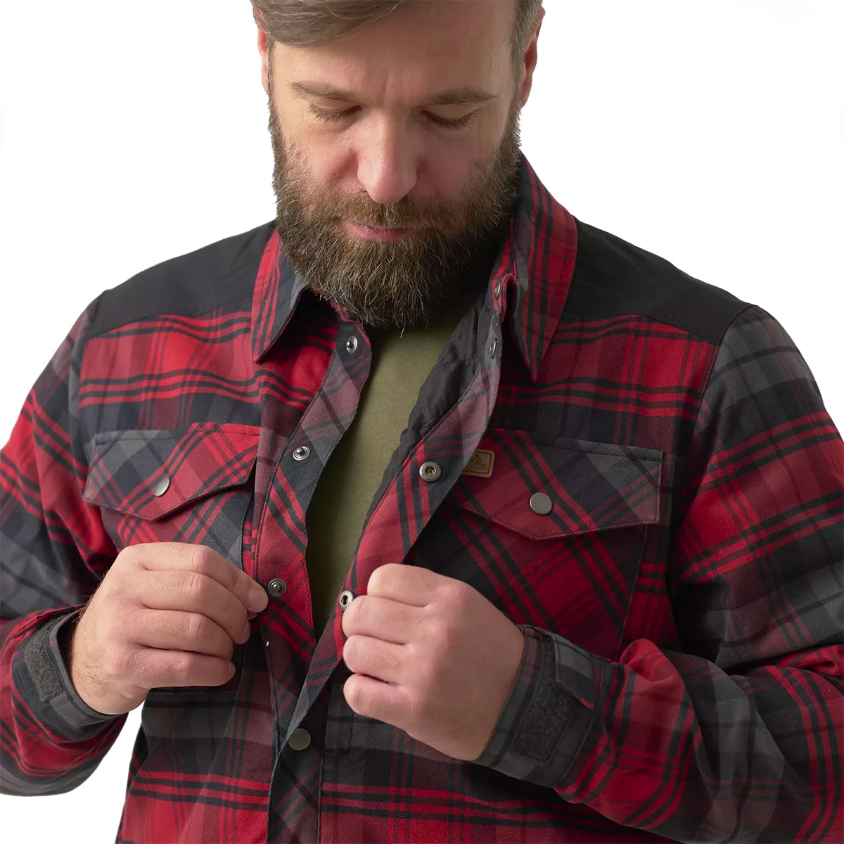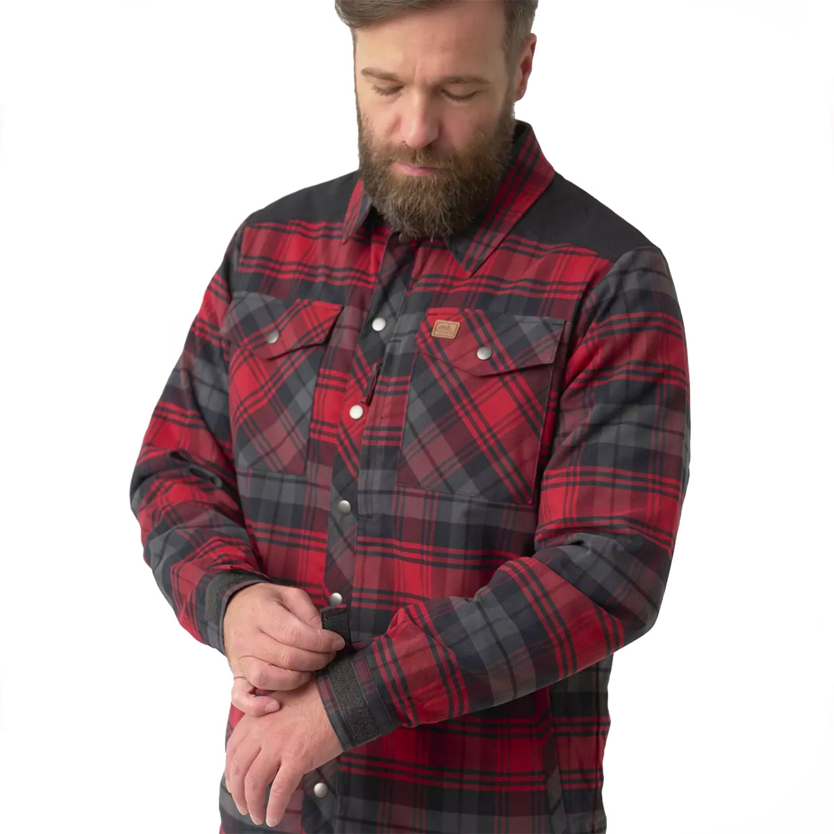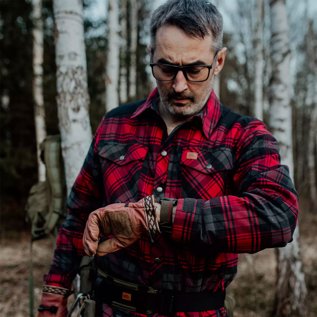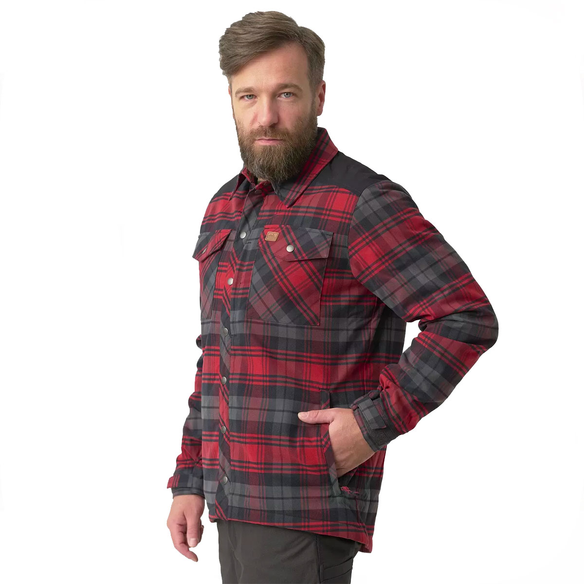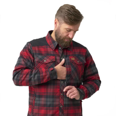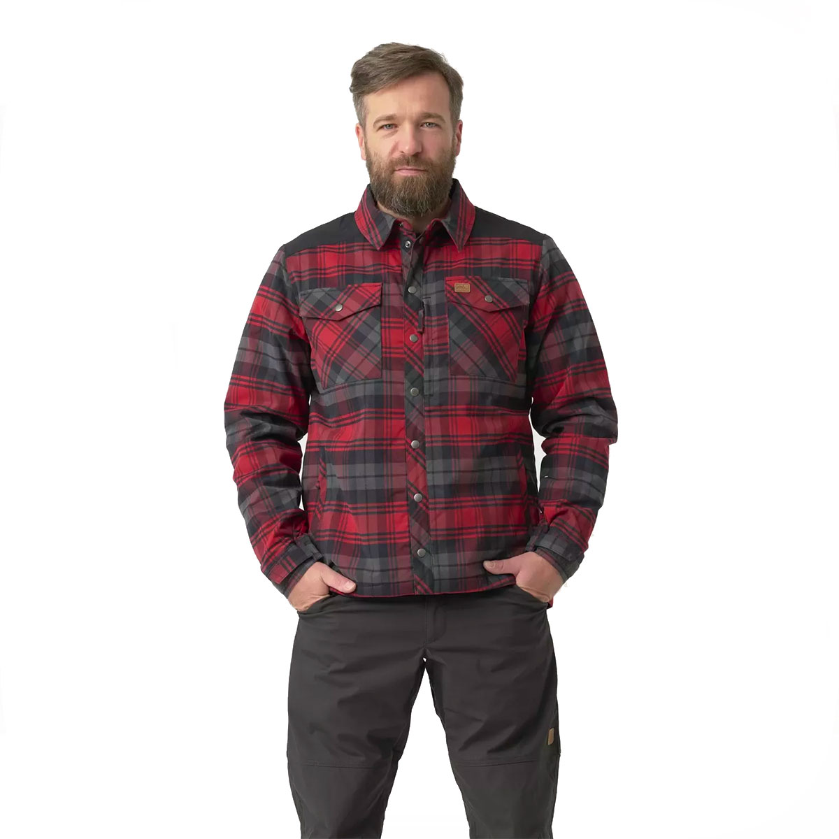 Una classica camicia a quadri con un tocco di originalità. Realizzata in materiali sintetici ad asciugatura rapida e con una leggera imbottitura da 60 g/m², è ideale per le situazioni in cui una giacca invernale è troppo pesante, ma una giacca a vento o un anorak non sono sufficienti. La camicia vanta un totale di sette tasche. All’interno, due ampie tasche per cappello e guanti. Esternamente, due tasche sul petto, due tasche per le mani e una tasca piatta per piccoli oggetti. Le spalle rinforzate proteggono la camicia da abrasioni e umidità. La chiusura a scatto è comoda e ne esalta il look senza tempo.