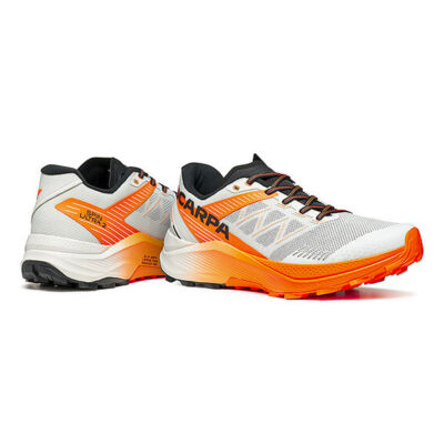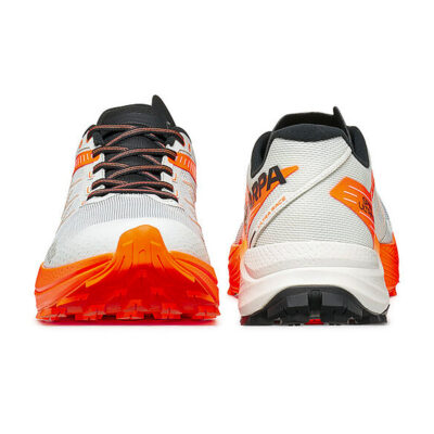 La tomaia, traspirante e resistente all’abrasione, presenta dei rinforzi in tecnologia 3D print combinati con la tecnologia EXO di SCARPA, che forma un esoscheletro integrato per sostenere lateralmente il piede. Grazie al sistema costruttivo Sock-Fit LW by SCARPA, la calzata avvolge perfettamente il piede, eliminando i punti di compressione e garantendo massimo comfort e precisione.
