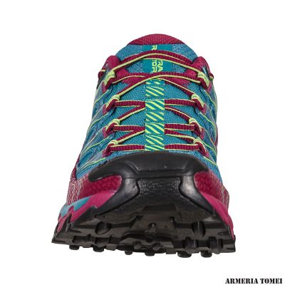 Ultra Raptor II Woman è il re-edit estetico del celebre modello Ultra Raptor, calzatura da trail running sviluppata per percorsi off-road a lunga distanza e sessioni di allenamento prolungate. La tomaia è in tessuto air-mesh altamente traspirante ed è assemblata integrando una piattaforma ammortizzante “Endurance Platform” in EVA morbida a spessore differenziato (maggiore in punta, inferiore sul tallone) per un ottimo assorbimento dell’impatto in qualsiasi situazione e riduzione del ramp-angle. La tallonetta stabilizzante posteriore permette un perfetto controllo sui traversi. Il sistema di allacciatura è integrato con la tomaia a mezzo di passanti cuciti sul tessuto elastico interno e con rinforzi in alta frequenza sul mesh esterno: tale sistema permette di ripartire la tensione dell’allacciatura su tutta la tomaia ed avvolgere al meglio il piede per un perfetto comfort di calzata. Lacci e plantare Ortholite® Hybrid sono inoltre realizzati in materiali riciclato. Ultra Raptor II è disponibile anche in versione comfort wide-fit dedicata ai runner con piede a pianta larga. Il risultato è una calzatura da ultra running indossabile per molte ore consecutive ed adatta per utilizzi off-road su qualsiasi tipo di terreno. Raptorize yourself, again.
