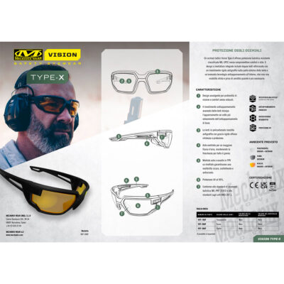 MECHANIX WEAR – VISION OCCHIALI BALISTICI TYPE-X MONTATURA NERA LENTE TRASPARENTE