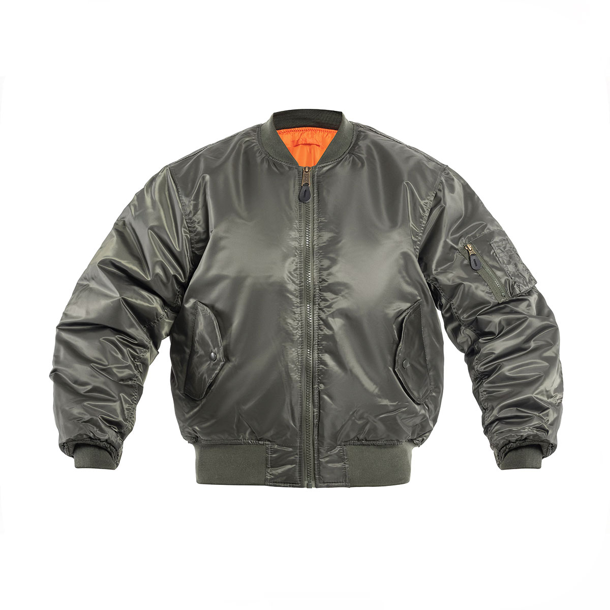 Giacca funzionale reversibile color oliva, ispirata al classico design della giacca da pilota MA-1 Flyers . Lo strato esterno è realizzato in resistente poliestere con rivestimento in PU , che protegge dall’umidità e dalle raffiche di vento. Il tessuto offre una maggiore resistenza all’abrasione e ai danni. L’ imbottitura in fibra sintetica di poliestere offre un buon isolamento termico nelle condizioni più fredde.