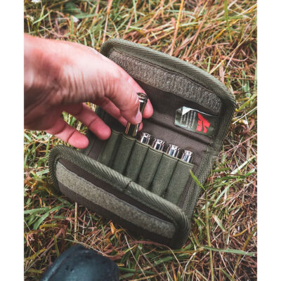 Porta pallottole per carabina imbottito con 12 celle e chiusura con velcro.