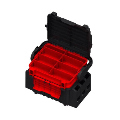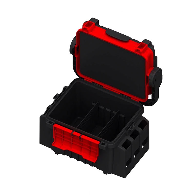 Dotata di un pratico vassoio porta esche come jerk, crank e cucchiaini da trout area, posizionato sotto il coperchio, consente un rapido accesso alle esche principali. La scatola è predisposta per l’installazione di un massimo di 4 portacanne dedicati (venduti separatamente), trasformandosi in una vera e propria postazione di pesca.