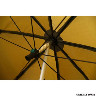 Il palo può essere posizionato in stile “Nu-brolly” e utilizzato con o senza picchetti; questo significa che il palo centrale può essere e riposizionato parallelo alla parte posteriore dell’ombrellone. Il palo può essere poi spinto nel terreno per offrire un riparo sicuro.
