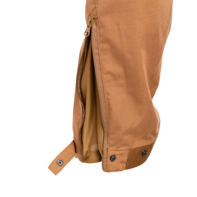 - Cerniera sul fondo per poter aprire e allargare il pantalone, sempre sul fondo è presente una pattella di chiusura per permetterne la regolazione ottimale.
