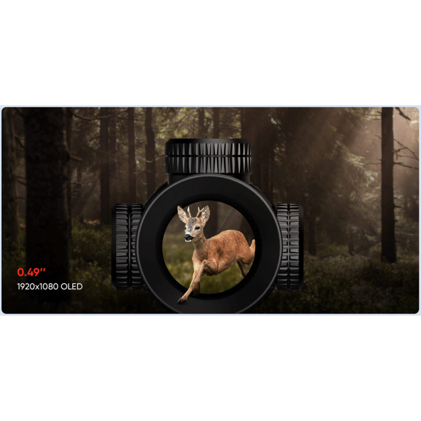 Il display OLED 1920×1080 di HIKMICRO ALPEX 4K presenta un design semicurvo semicurva da 0,49”, sblocca nuove e piacevoli prospettive di osservazione, offrendo un’esperienza di caccia coinvolgente.