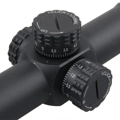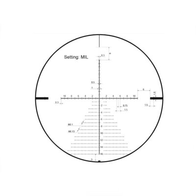 Ottica sul primo piano focale con reticolo ad albero di natale con riferimenti in MIL. Perfetto per il tiro sportivo di precisione. Ideale per carabine ad aria compressa PCP, softair, o per carabine di piccolo calibro (.22li, .17hmr)