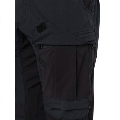 Realizzato in resistente poliestere a costruzione ripstop con inserti elastici su ginocchia, interno coscia e retro per massima libertà di movimento. L’inserto elastico in canneté della cintura posteriore assicura massimo comfort.