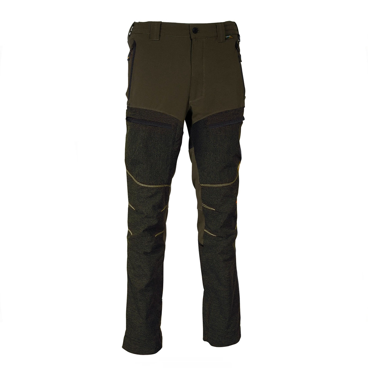 Descrizione: tessuto elasticizzato, taglio ergonomico di gambe e ginocchia, 2 ampie tasche anteriori chiuse con zip, 2 tasche posteriori chiuse con zip, parte posteriore vita rialzata, D-Ring, elastico in vita, antispino e antirovo, 2 tasche sulle gambe con tessuto antiabrasione chiuse con zip, tessuto antiabrasione sulla parte anteriore e sul fondo gamba dietro, ogni gamba è dotata di un gancio per fissare le estremità dei pantaloni ai lacci delle scarpe