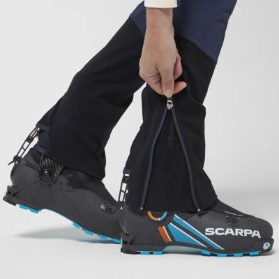 - Fondo gamba elasticizzato con zip, con comodo soffietto e accesso diretto alle fibbie delle scarpe per passaggio modalità salita/discesa rapida + rinforzi di protezione contro le lamine
