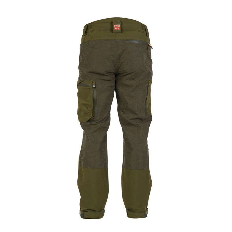 Realizzato in micro-toplon silenzioso e resistente con rinforzi in nylon 500D. Presenta quattro tasche con cerniere impermeabili: due tasche frontali, una tasca cargo laterale e una tasca posteriore. La tasca cargo a doppio scomparto offre un accesso rapido e facile al tuo equipaggiamento. Include anche due cerniere di ventilazione impermeabili e una tasca per coltello. L’innovativo sistema HLS (Hook & Loop System) permette di stringere facilmente l’orlo e può essere rimosso con facilità se non necessario. Elevato grado di impermeabilità (10.000 mm) e traspirabilità (10.000 g/m²).
