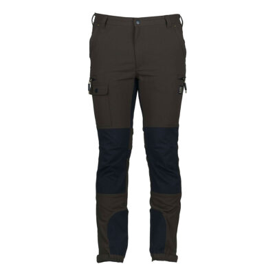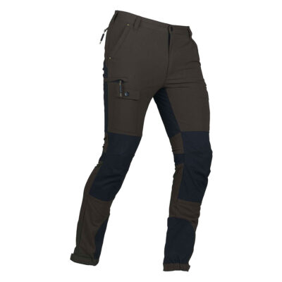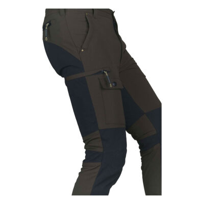 Pantalone da caccia LEGEND, in robusto nylon elasticizzato idrorepellente. Due tasche frontali, due tasche laterali a scomparsa con zip e una tasca porta cellulare, due tasche posteriori con zip, elastico in vita, fondo gamba con elastico e possibilità di restringimento con velcro.