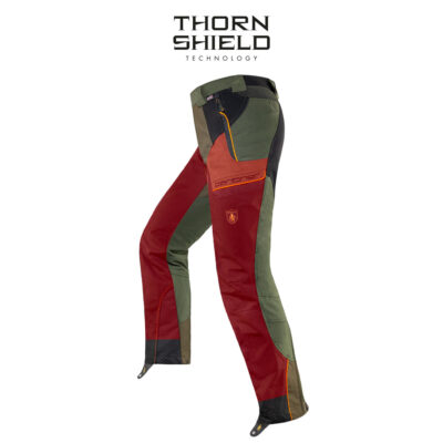 PANTHER PRO 4.0 è un pantalone con tecnologia THORN SHIELD®: sviluppata da TRABALDO®, è una speciale struttura tessile in grado di migliorare sensibilmente la resistenza alla perforazione, riducendo fastidiosi danni all’epidermide causati dall’utilizzo in ambienti spinosi. Per conferire vestibilità sinuose e confort di calzata, nella quarta generazione abbiamo utilizzato la nuova culatta in KETRTEX bi-stretch, che in unione alla confort-zone lombare non vi farà sembrare possibile di stare indossando un pantalone così rinforzato.
