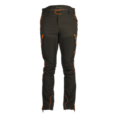 Pantalone tecnico da caccia Sniper realizzato in tessuto elasticizzato idro repellente. Rinforzi in Cordura® anti strappo su tutta la gamba per una maggiore protezione. Due tasche frontali con zip, due capienti tasche laterali a scomparsa con zip, aperture posteriori per l’aerazione, due tasche posteriori con zip, zip a fondo gamba, elastico ai fianchi.