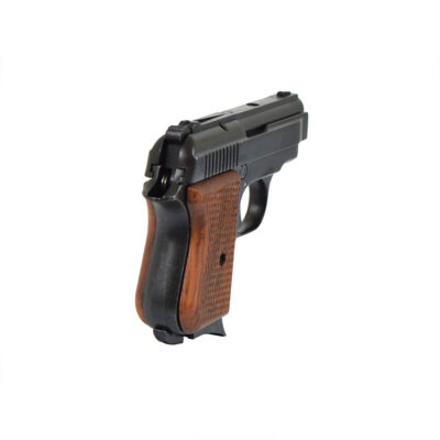 Pistola a salve semiautomatica calibro 8 mm nera. Replica dellaTanfoglio 6,35. Funzionamento singola azione con sicura. Caricatore monofilare con capacità 5 colpi. Corredata di valigetta in plastica, scovolo, e libretto di istruzioni. Prodotto interamente in Italia. La pistola spara con funzionamento semiautomatico. Assicura un elevato rumore generato dalla velocità dei colpi.