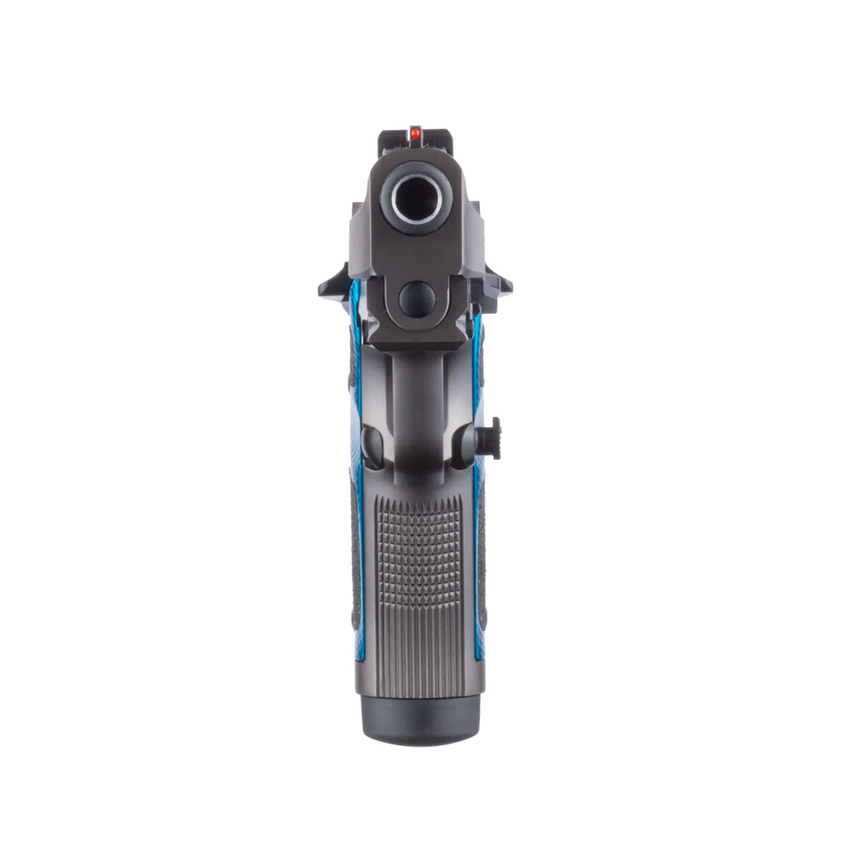 La finitura Graphite Grey, antiriflesso e resistente alla corrosione, è ravvivata dai colori delle guancette in alluminio e dei grilletti. Lo sgancio caricatore maggiorato e orientabile è abbinato a una texture aggressiva sulle guancette per un controllo senza precedenti, mentre il percussore e il cane Match ridisegnato sono rivestiti in DLC per una maggiore riduzione dell’attrito e un meccanismo più fluido.